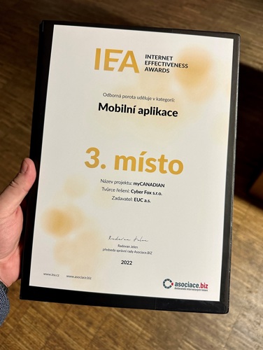 Aplikace myCANADIAN získala ocenění v soutěži Internet Effectiveness Awards 2022. Jedná se o nejvýznamnější českou soutěž efektivity digitálních projektů, kterou už 15 let pořádá Asociace dodavatelů internetových řešení. Přínos digitálních projektů hodnotí odborná porota.