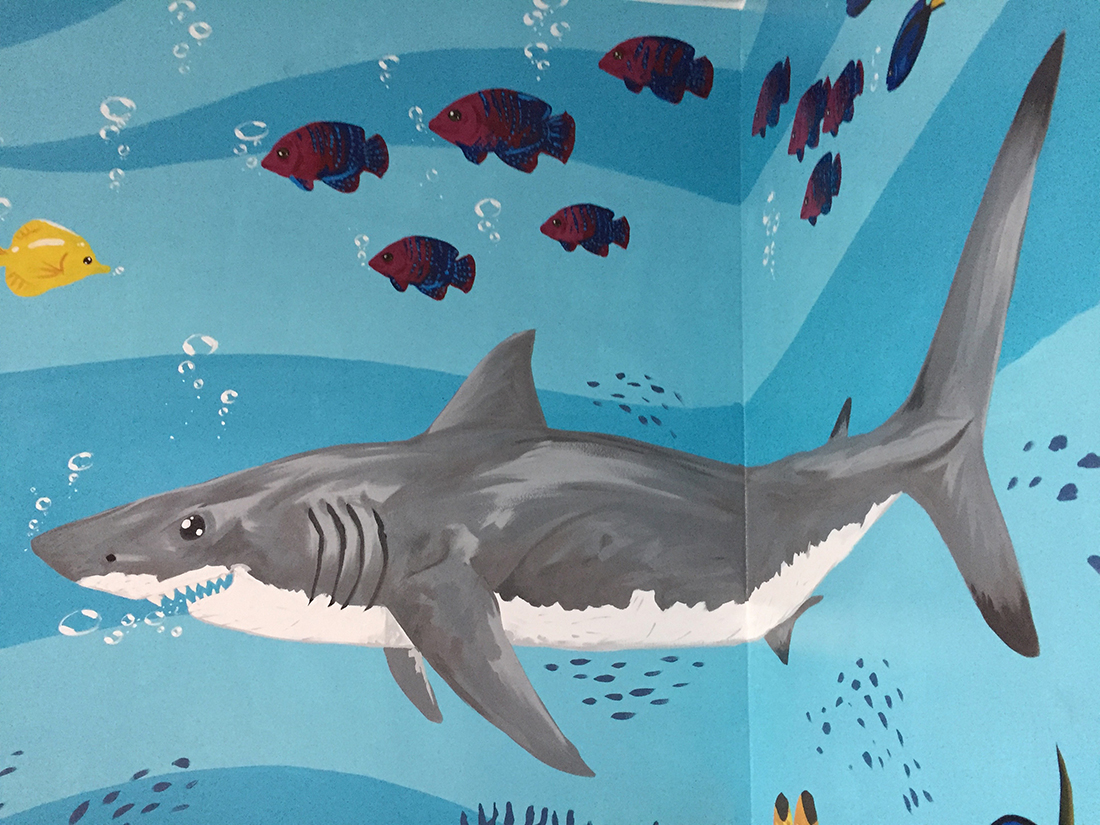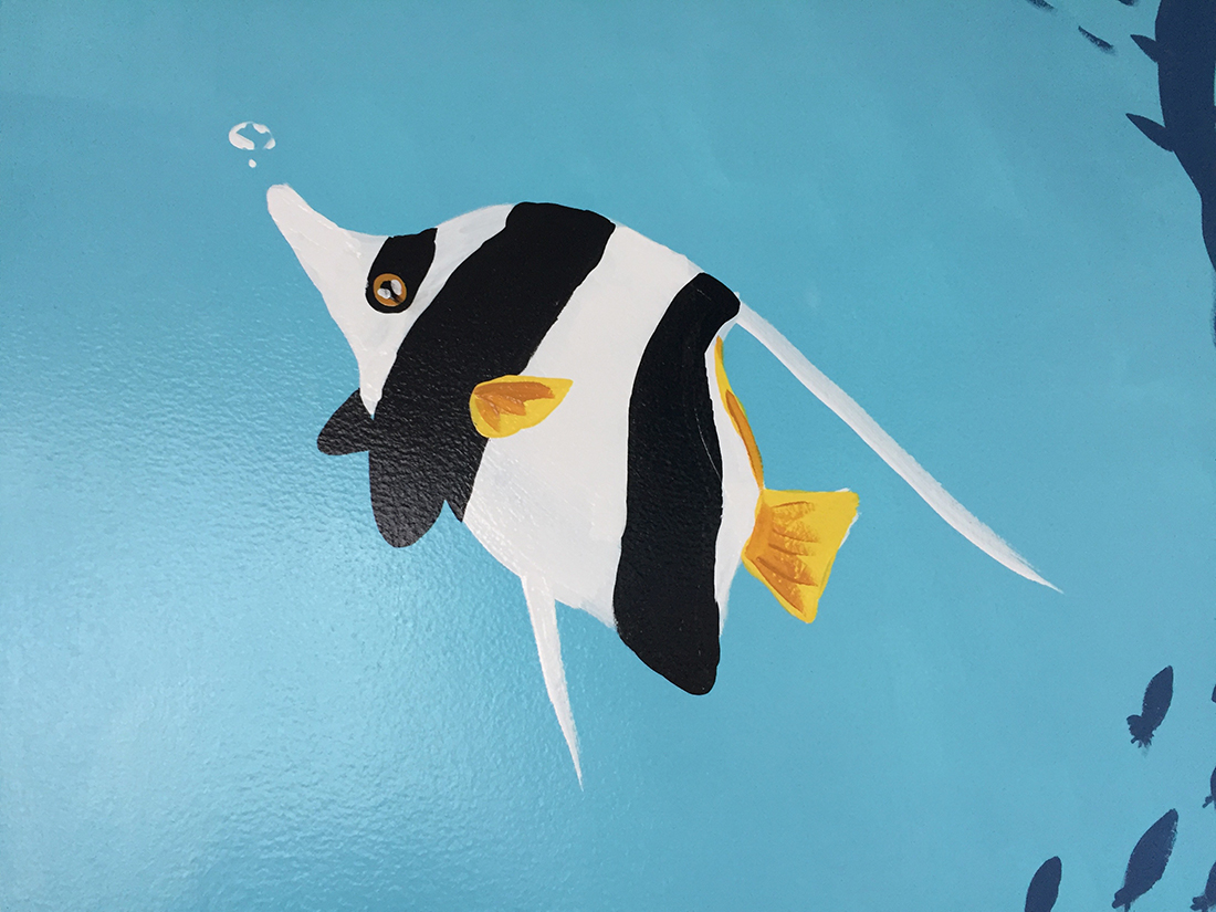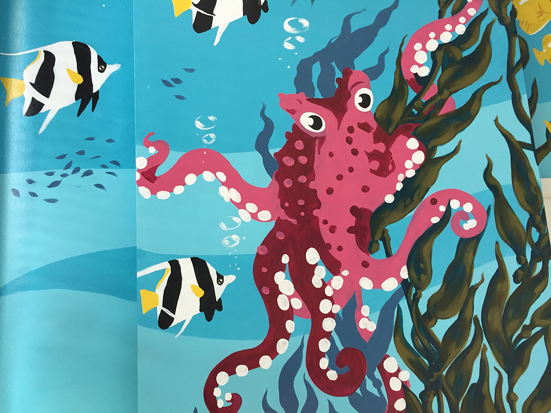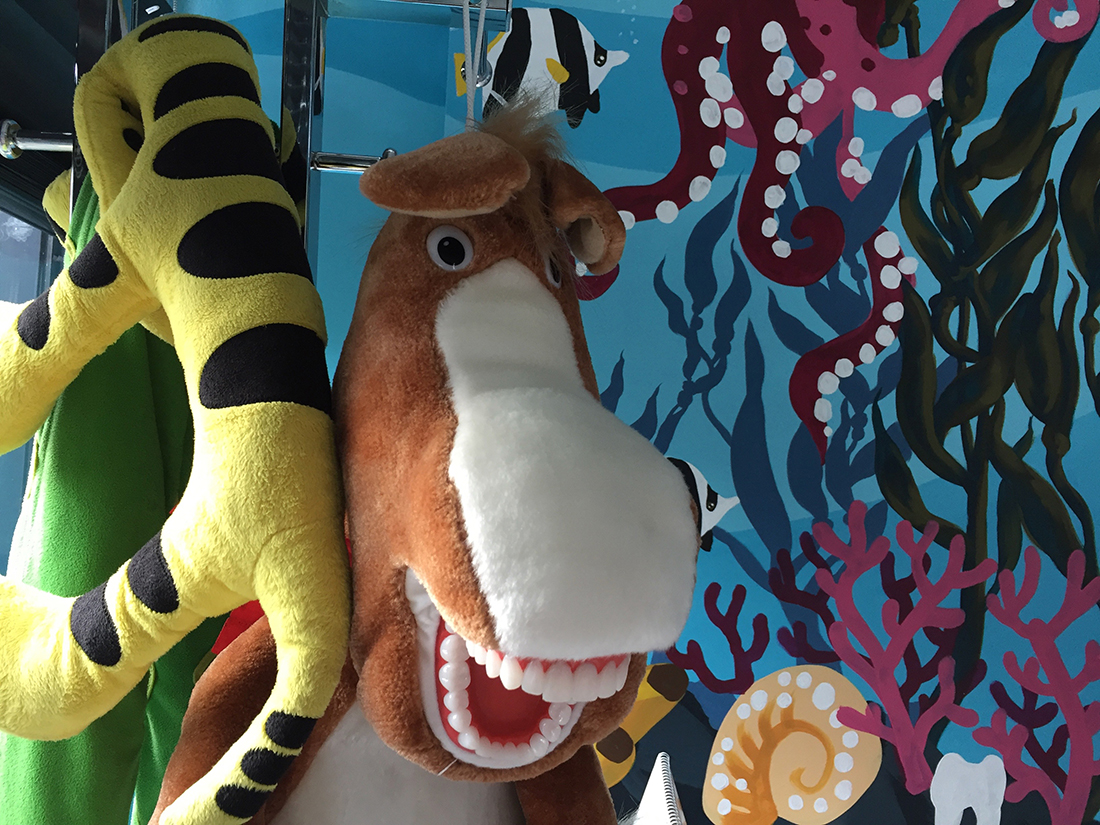 Since we like to take care of our youngest patients and want to make sure that they feel comfortable with us, we arranged for one of the practices to be painted to look like an aquarium.